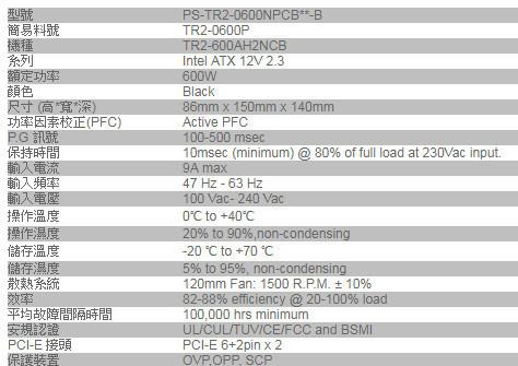 ‧型號:PS-TR2-0600NPCBTW-1