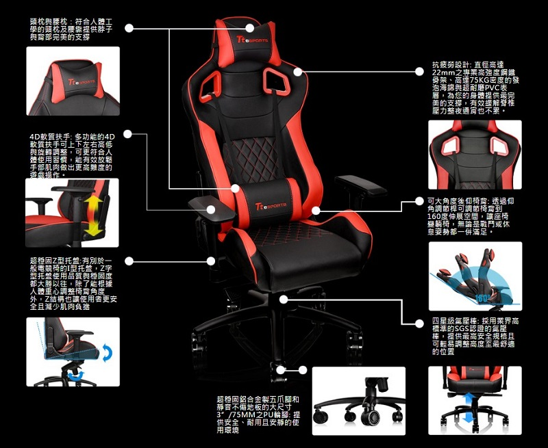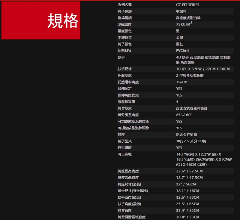 曜越 Ttesports 鬥龍GT FIT 專業電競椅/紅色/GC-GTF-BRMFDL-01