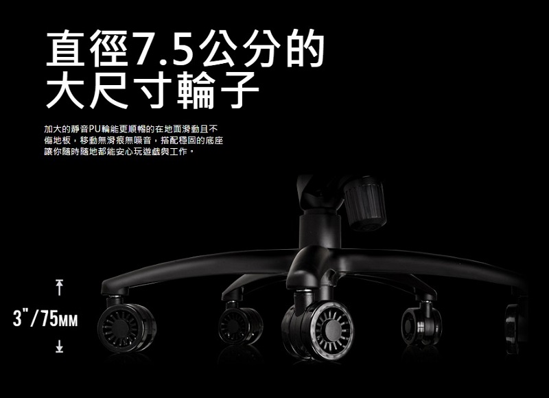 .直徑7.5公分的大尺寸輪子