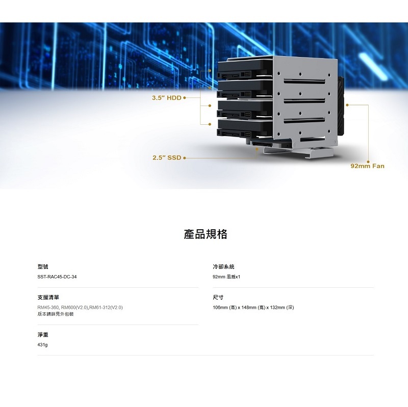 SilverStone 銀欣 RAC45-DC-34 支援RM45-360專用的3.5" HDD模組/SST-RAC45-DC-34