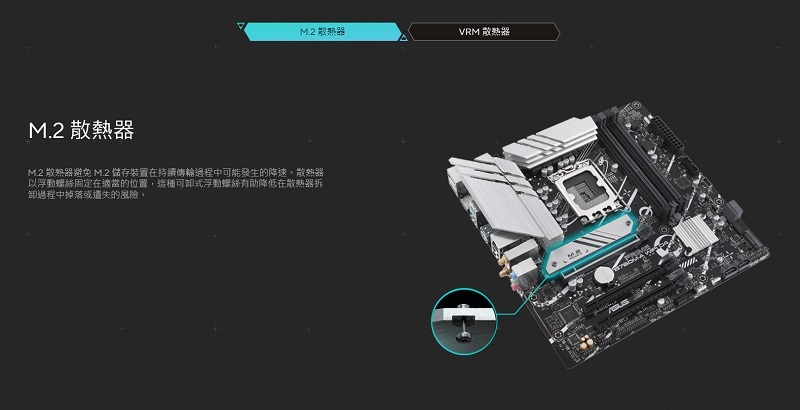 ‧全方位散熱:VRM 散熱器、M.2 散熱器、PCH 散熱器、混合風扇接頭及 Fan Xpert 2+