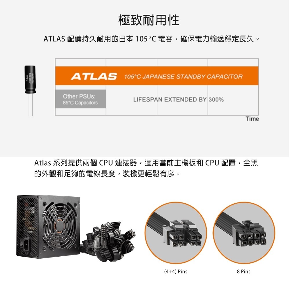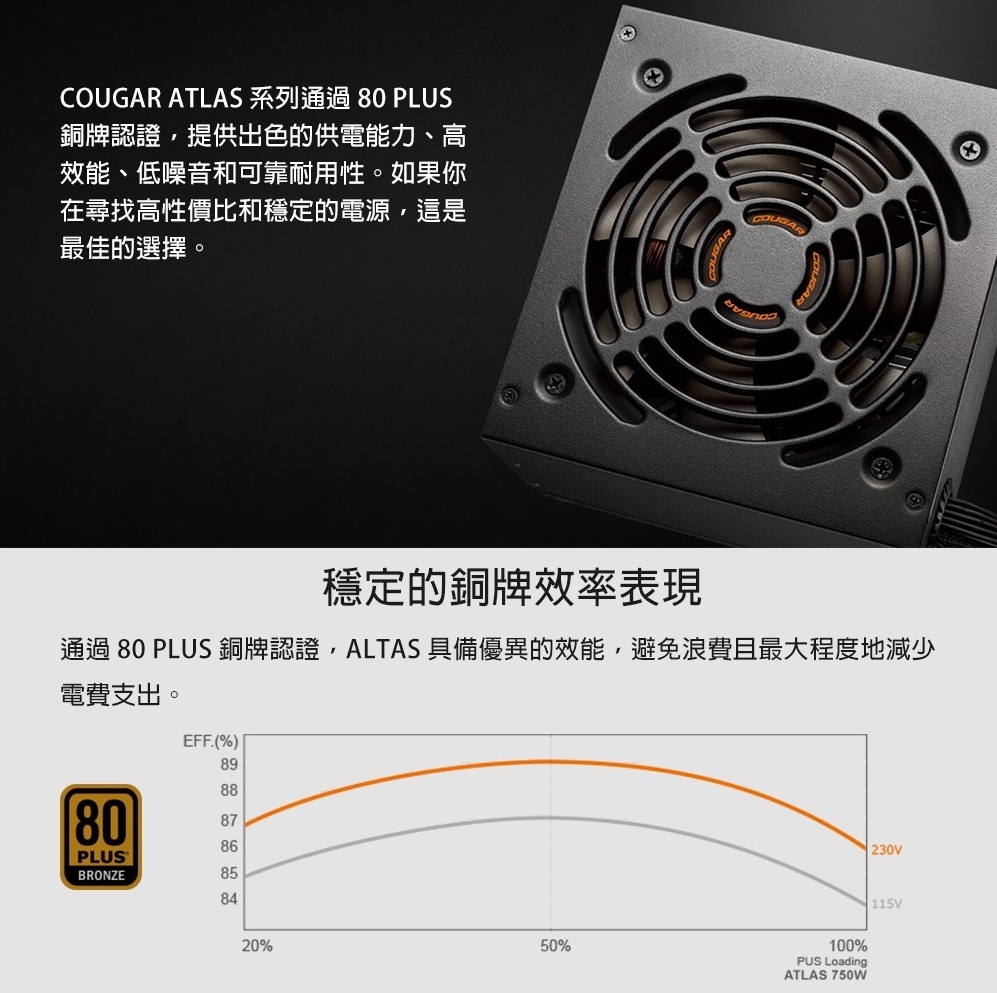 米特3C數位–COUGAR 美洲獅 ATLAS 550W/650W 銅牌 電源供應器 直出電源
