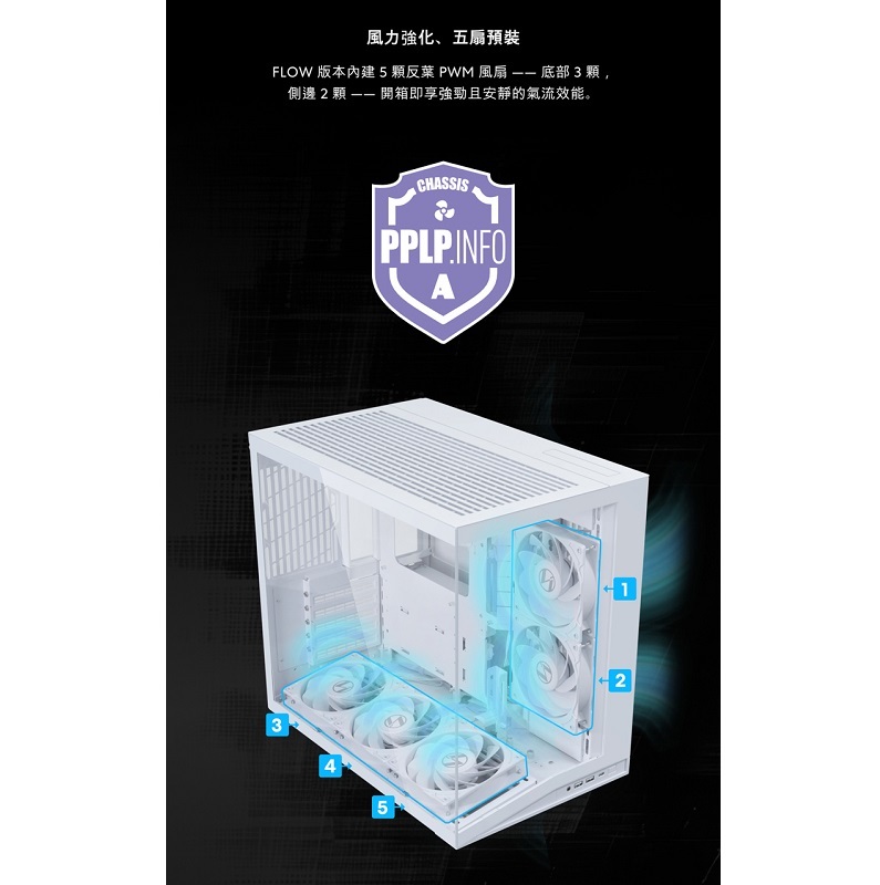 ‧風扇支援:12cm x2 (側)  / 12cm x1 (後) / 12cm x3 (下) / 12cm x3 或 14cm x2 (上)