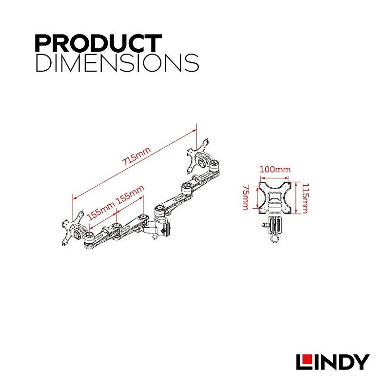 ▲LINDY 林帝 雙液晶螢幕長旋臂式支臂 40697