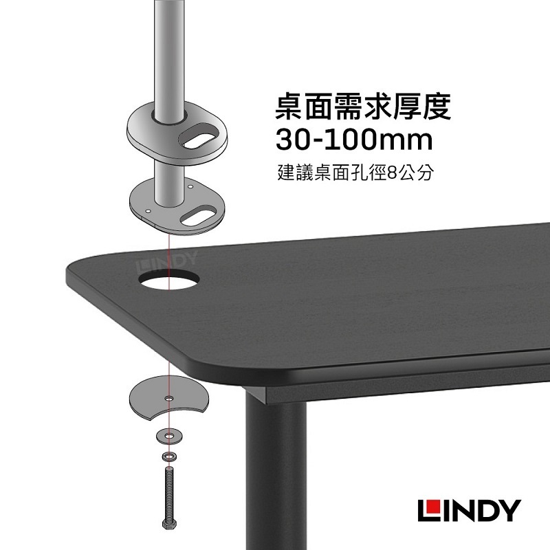 4.穿孔式支桿(可安裝桌面厚度 30 mm~50 mm,建議孔徑8公分)
