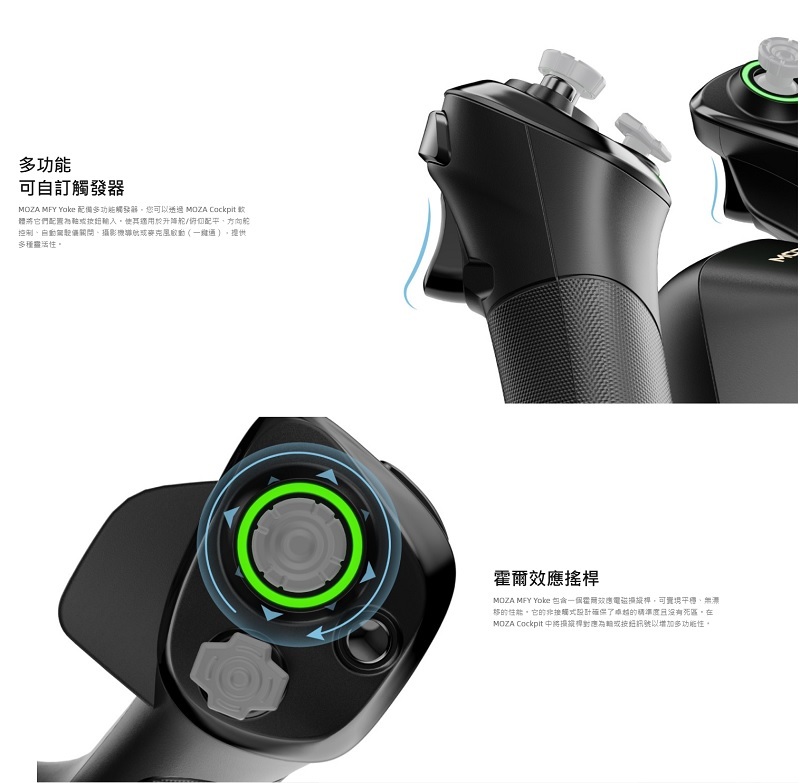 ‧MFY 具有 34 個可配置輸入、可自訂的 RGB 照明和多功能霍爾效應操縱桿觸發器,可無縫適應各種飛行功能,包括升降舵/俯仰配平、方向舵控制、自動駕駛儀脫離和攝影機導航。