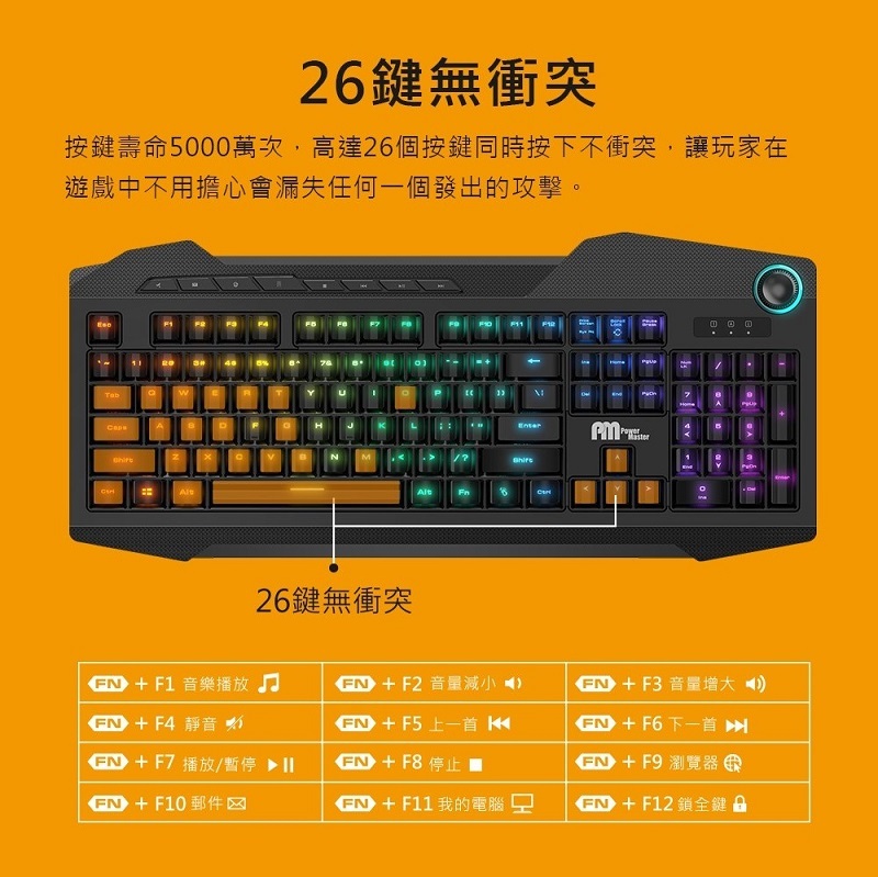 Power Master 亞碩 KM-31北極星 26鍵無衝突/可調音量/鐳射鍵帽/RGB 薄膜式鍵盤