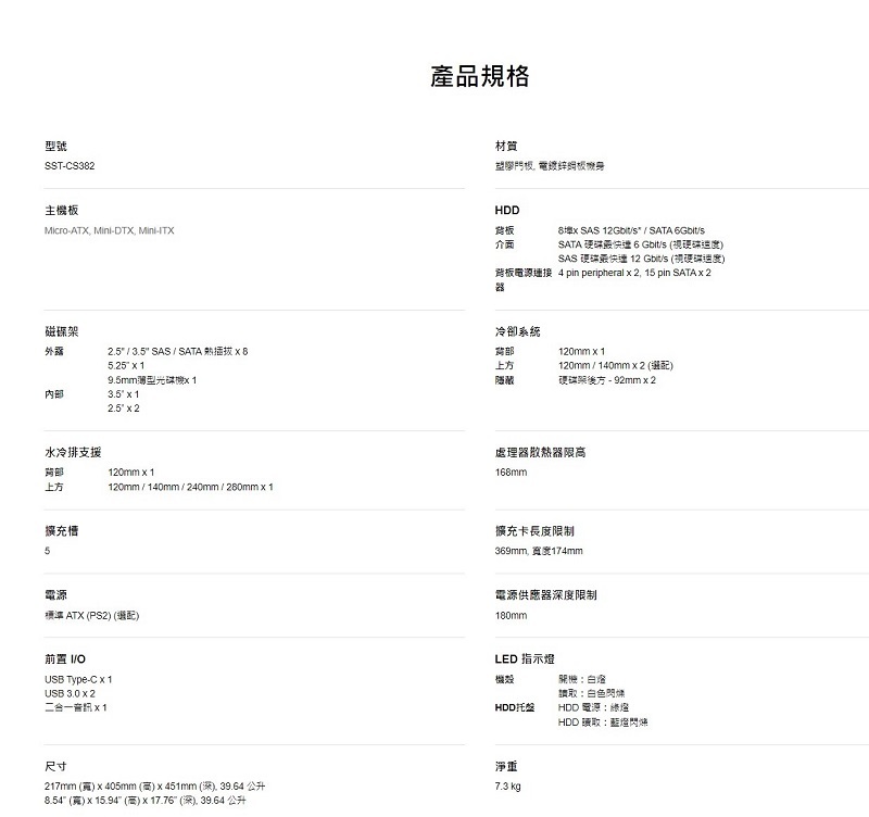 SilverStone 銀欣 CS382 熱插拔多功能NAS機殼/SST-CS382