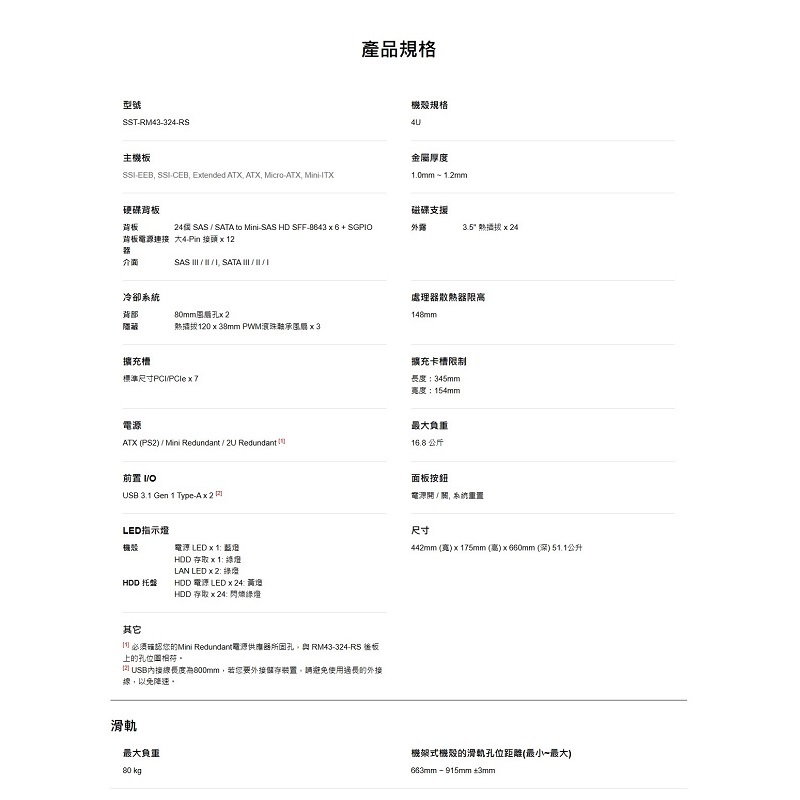 SilverStone 銀欣 RM43-324-RS 4U Mini-SAS HD SFF-8643 12 Gb/s 24 埠 2.5"/3.5"硬碟熱插拔伺服器機殼/SST-RM43-324-RS