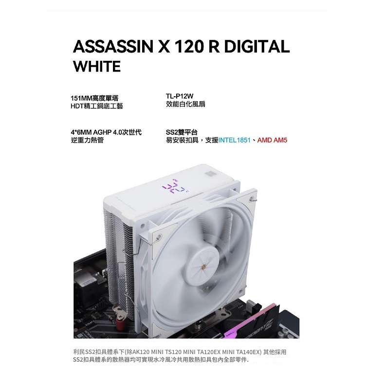 Thermalright 利民 Assassin X 120 R Digital 單塔散熱器 黑色/白色