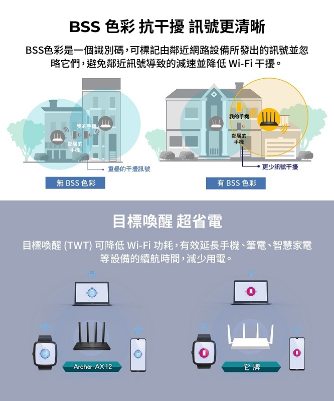 ‧向下相容 : Archer AX12 支援所有 802.11 標準和 WiFi 設備。