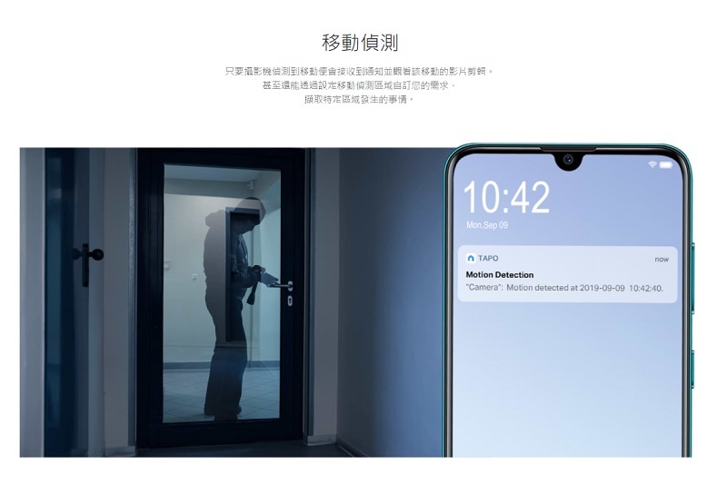 ‧移動偵測和通知 - 在攝影機偵測到移動時發送通知給您