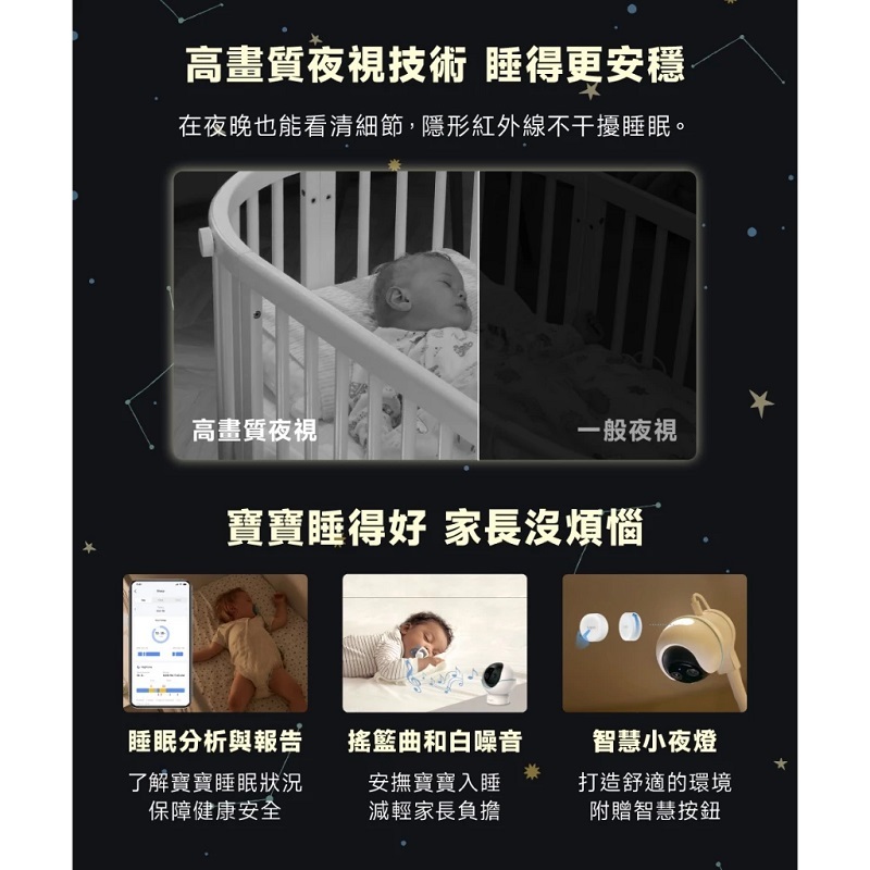 ‧夜視高畫質,不可見紅外線:在寶寶酣睡的夜晚,查看最細微的細節。