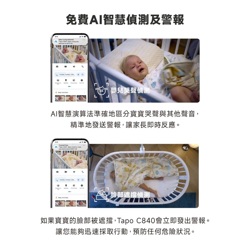 米特3C數位–TP-Link Tapo C840 雙畫面 Wi-Fi監視器 旋轉式智慧嬰兒哭聲偵測攝影機