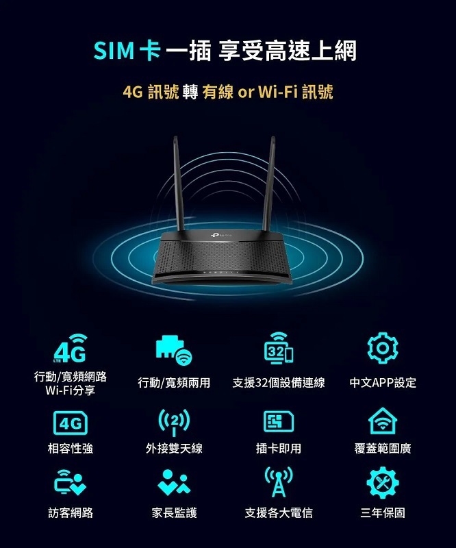 米特3C數位–TP-Link TL-MR100 300Mbps 4G LTE 無線網路 WiFi路由器 WiFi分享器