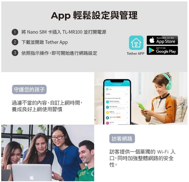 ˙極速 4G 網路 – 分享網際網路存取給最多 32 個 Wi-Fi 設備並享受高達 150Mbps 的下載速度