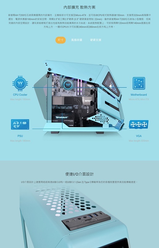 米特3C數位–Thermaltake 曜越 AH T200 強化玻璃機殼/黑/白/粉紅/松石綠/競速綠
