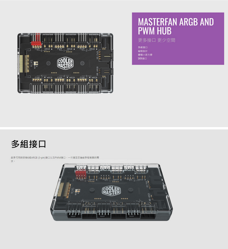 米特3C數位–酷碼MasterFan ARGB&PWM HUB1分6Port集線器/MFX-ZHHN-1NNN6-R1