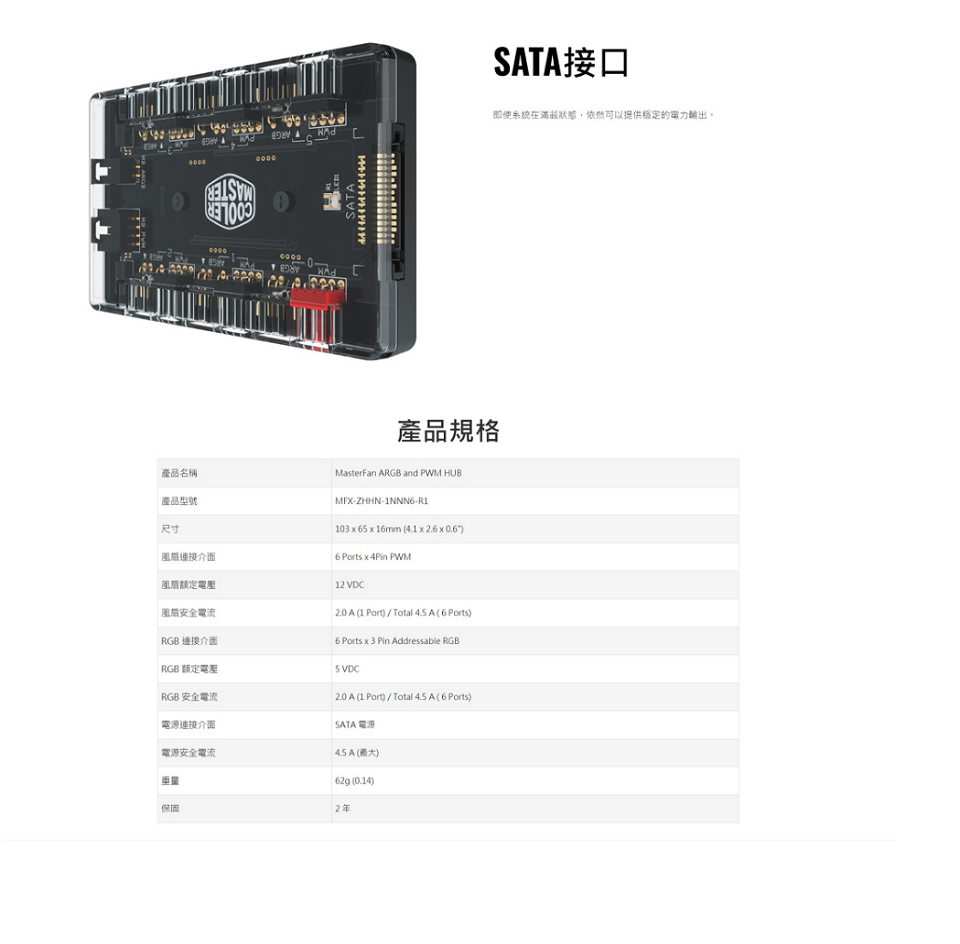 酷碼MasterFan ARGB&PWM HUB1分6Port集線器/MFX-ZHHN-1NNN6-R1