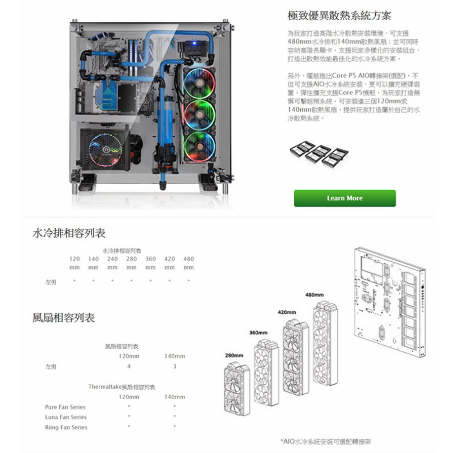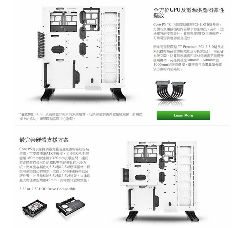 米特3C數位–TT 曜越 Core P5壁掛式ATX強化玻璃機殼/雪白版/CA-1E7-00M6WN-01