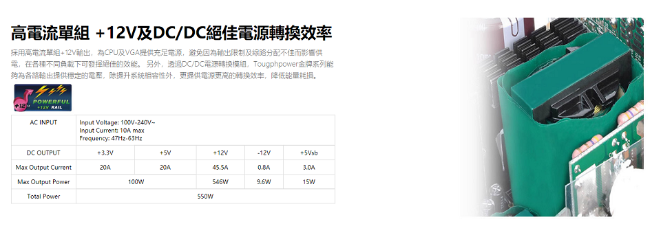 ‧高電流單組 +12V及DC/DC絕佳電源轉換效率