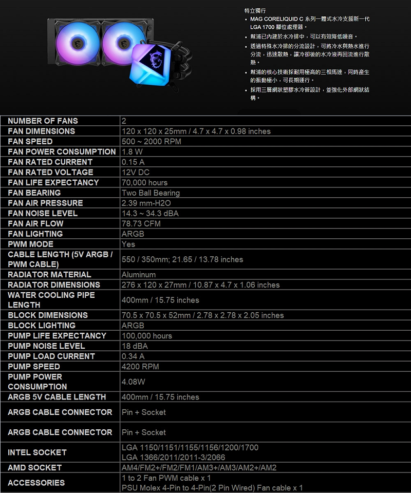 MSI 微星 MAG CORELIQUID C240 水冷風扇