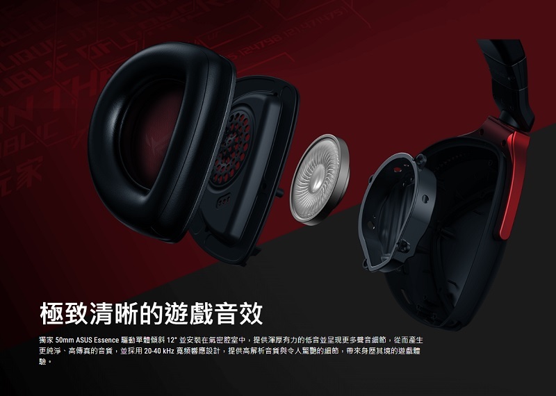 ‧獨家 50 mm ASUS Essence 驅動單體及氣密腔體,打造沉浸音質體驗