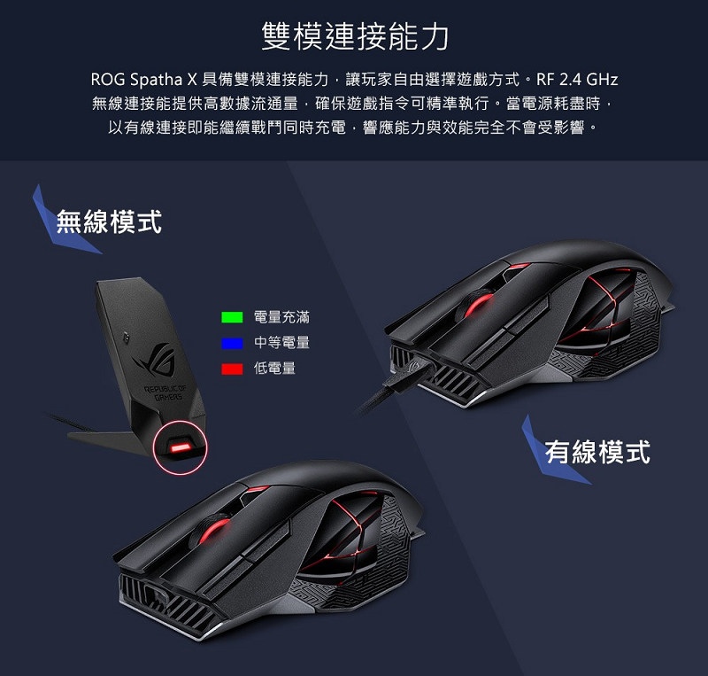 ASUS 華碩 ROG Spatha X 無線電競滑鼠/黑/90MP0220-BMUA00