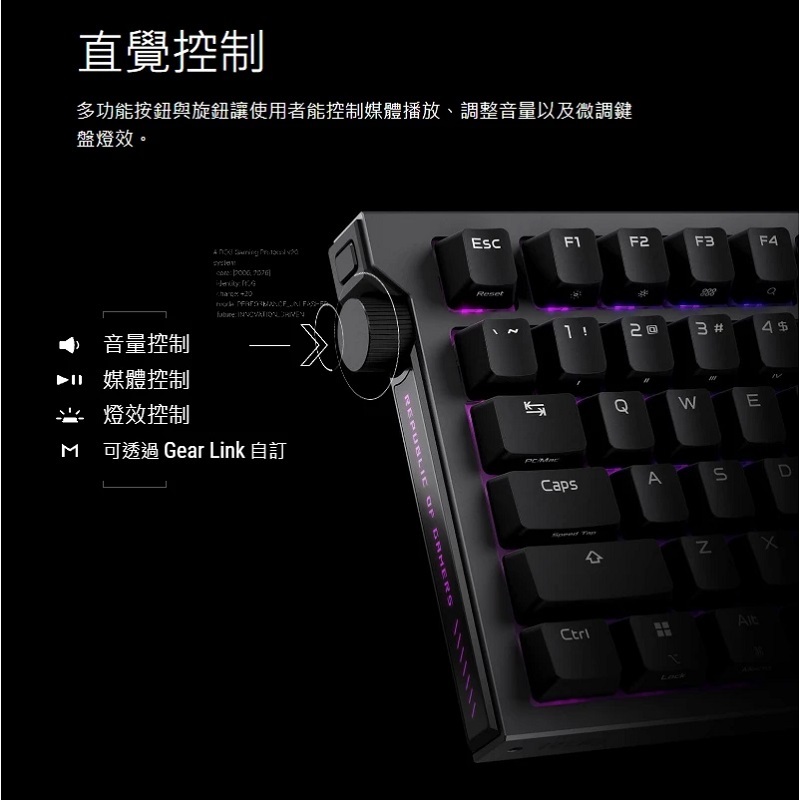 ‧直覺控制旋鈕: 讓使用者輕鬆控制多媒體播放、調整音量及切換鍵盤燈效。