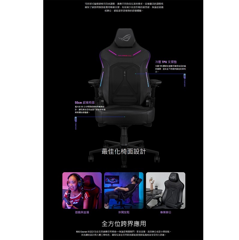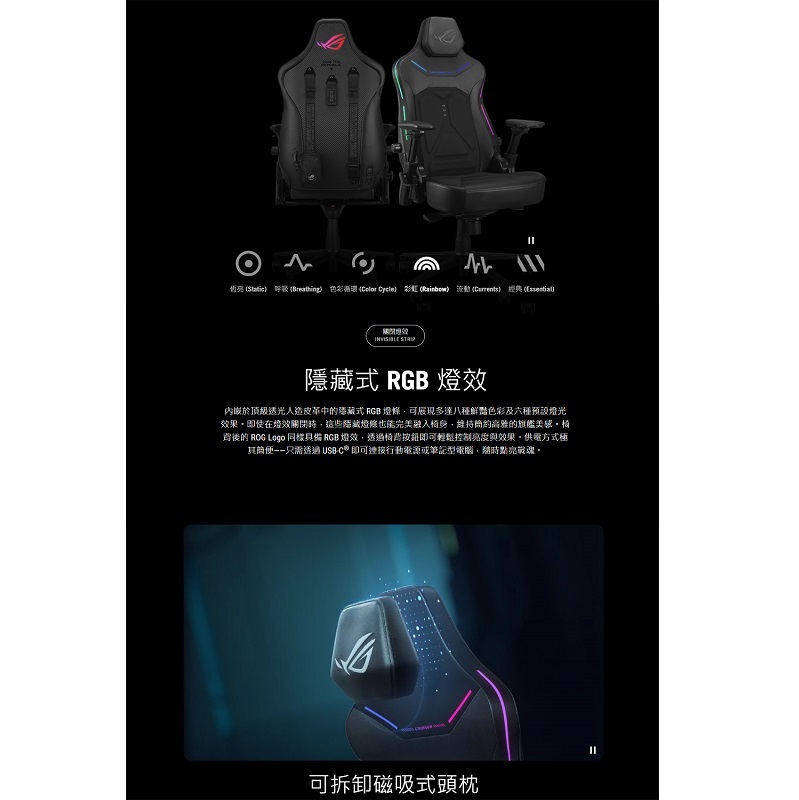 ‧可拆卸磁吸式頭枕: 確保 ROG Courser 能完美適應不同身高的使用者