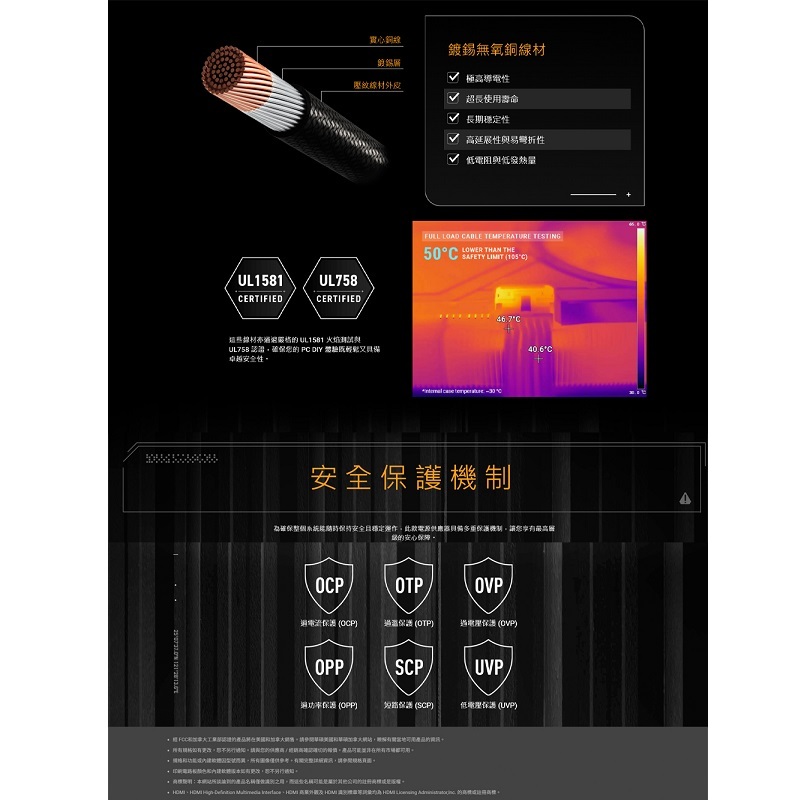 ‧模組化壓紋線材採用柔軟的優質材料,確保輕鬆的線材管理和出色的安全性。