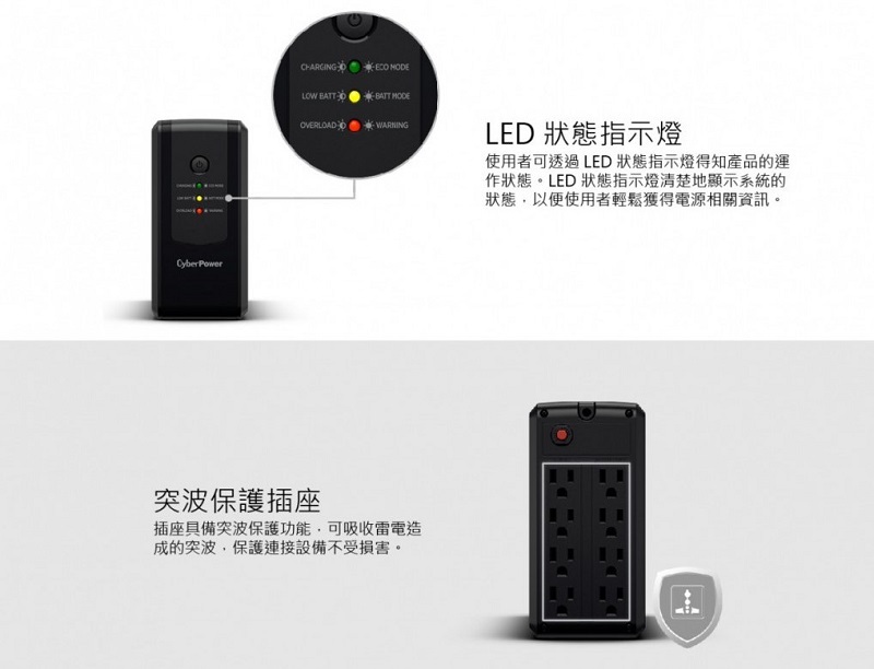 CyberPower碩天 UT650G-TW 650VA UPS在線互動式UT不斷電系統 突波保護 過載保護 颱風停電