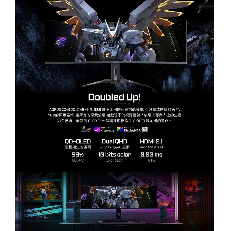GIGABYTE 技嘉 AORUS CO49DQ 49型 HDR曲面電競螢幕