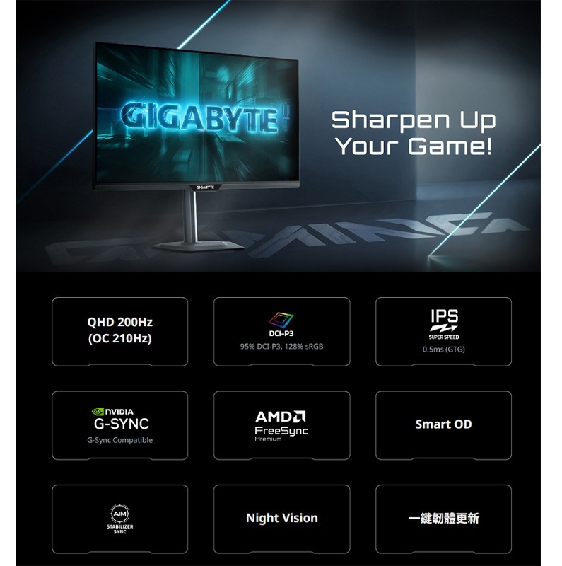 GIGABYTE 技嘉 G27Q2 2K/200Hz/OC 210Hz/平面/IPS 27吋電競螢幕