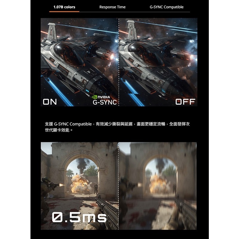 ‧真實反應時間(Tr+Tf ):0.5ms GTG