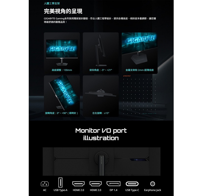 ‧GIGABYTE Gaming系列採用獨家設計腳座,符合人體工程學設計