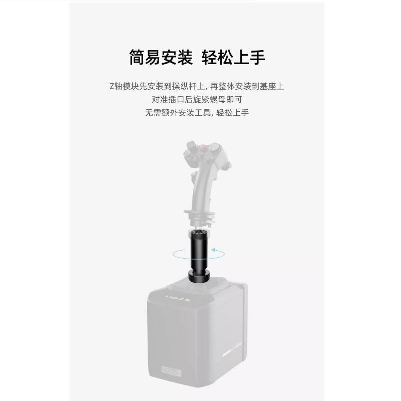 ‧簡易安裝 輕鬆上手 Z軸模組先安裝到操縱桿上,再整體安裝到基座上 對準插口後旋緊螺帽即可,無需額外安裝工具,輕鬆上手