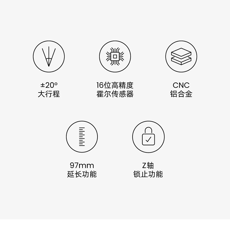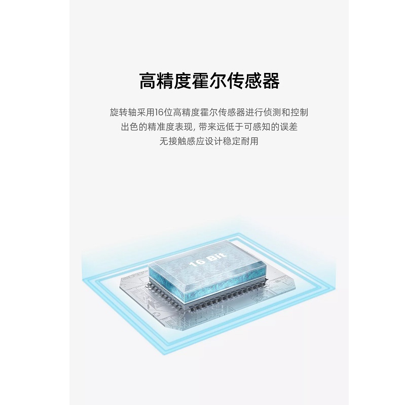 ‧高精度霍爾感測器 旋轉軸採用16位元高精度霍爾感測器進行偵測與控制 出色的精準度表現,帶來遠低於可感知的誤差 無接觸感應設計穩定耐用