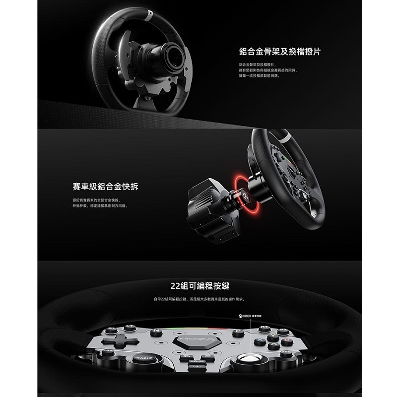 •透過此方向盤 可使任何Moza基座再XBOX上遊玩。