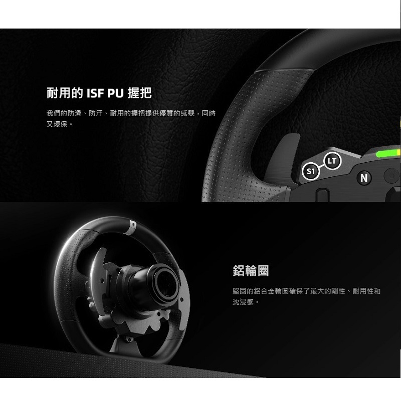 •這款滾輪具有 22 個可自訂按鈕,可實現完全控制和即時調整,而完全可調的 RPM LED 燈則為您的設定增添了動態。