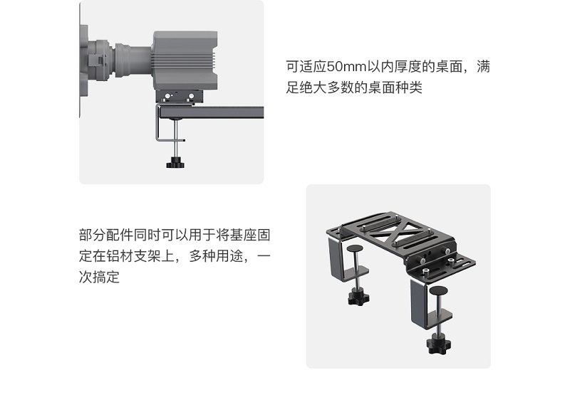 ‧可將基座穩固地夾持在桌面上,無需專門的模擬器支架也可暢玩直驅,不佔用家庭空間,即夾即玩,收納方便。