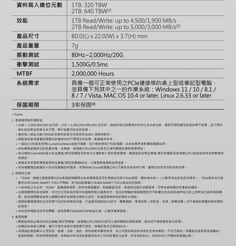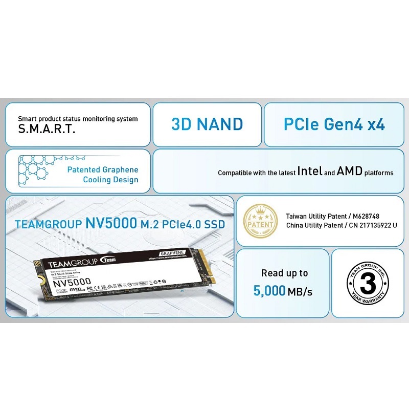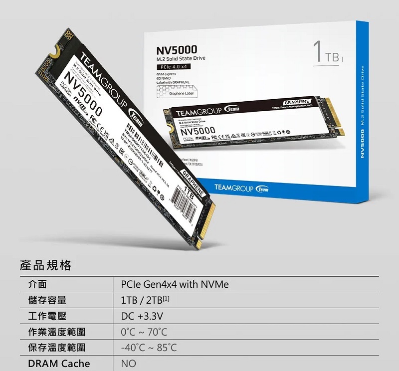 十銓 NV5000 1TB Gen4 M.2固態硬碟 讀4500/寫1900 3年保固/TM8FGM001T0C101