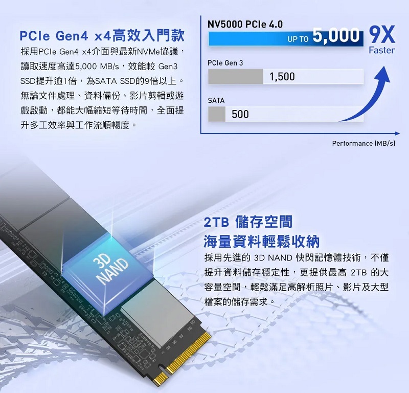 十銓 NV5000 1TB Gen4 M.2固態硬碟 讀4500/寫1900 3年保固