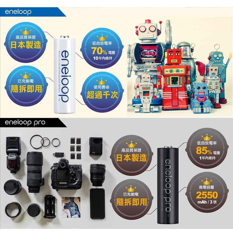 ‧低自放電,放置1年仍有85%電量,長期儲存無憂。