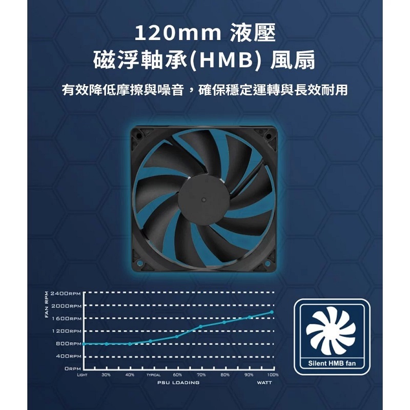 ‧採用靜音 120mm液壓磁浮軸承(HMB)風扇