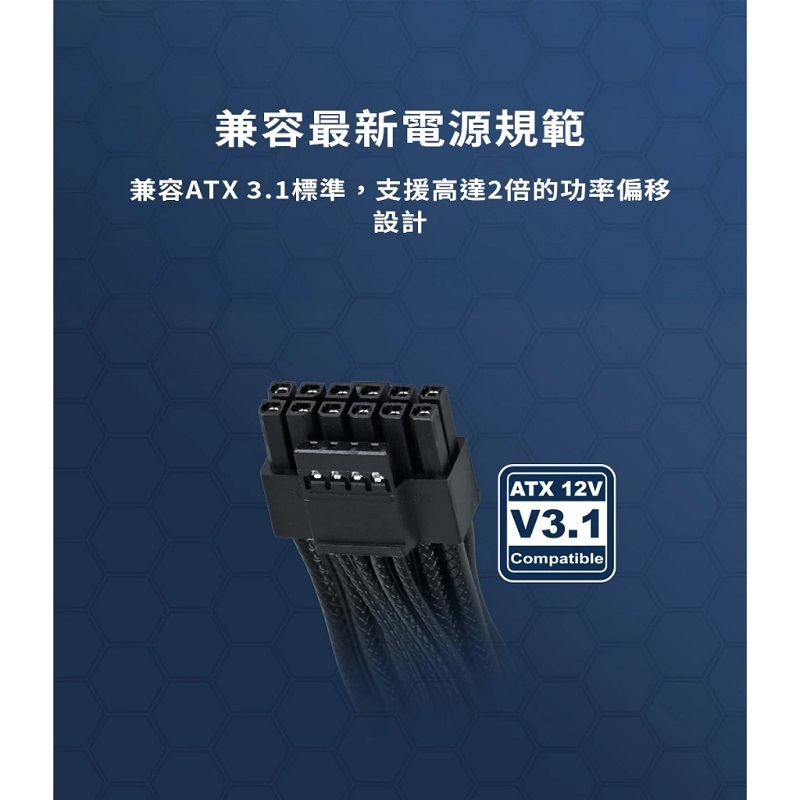 ‧兼容Intel ATX 3.1 規範,配備 Gen5 12V-2x6 PCIe 接頭