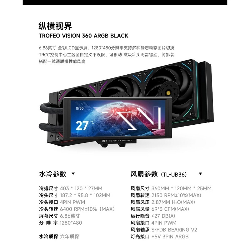 Thermalright 利民 Trofeo Vision 360 ARGB 6.87吋 一體式水冷散熱器 黑/白