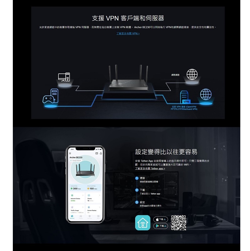 ‧簡單安裝和使用: 透過Tether App,讓網路管理變得如此簡單。