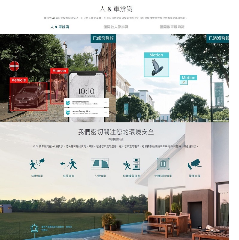 ‧人 & 車辨識: 辨識人像和車輛,讓您可以接收更準確的事件通知