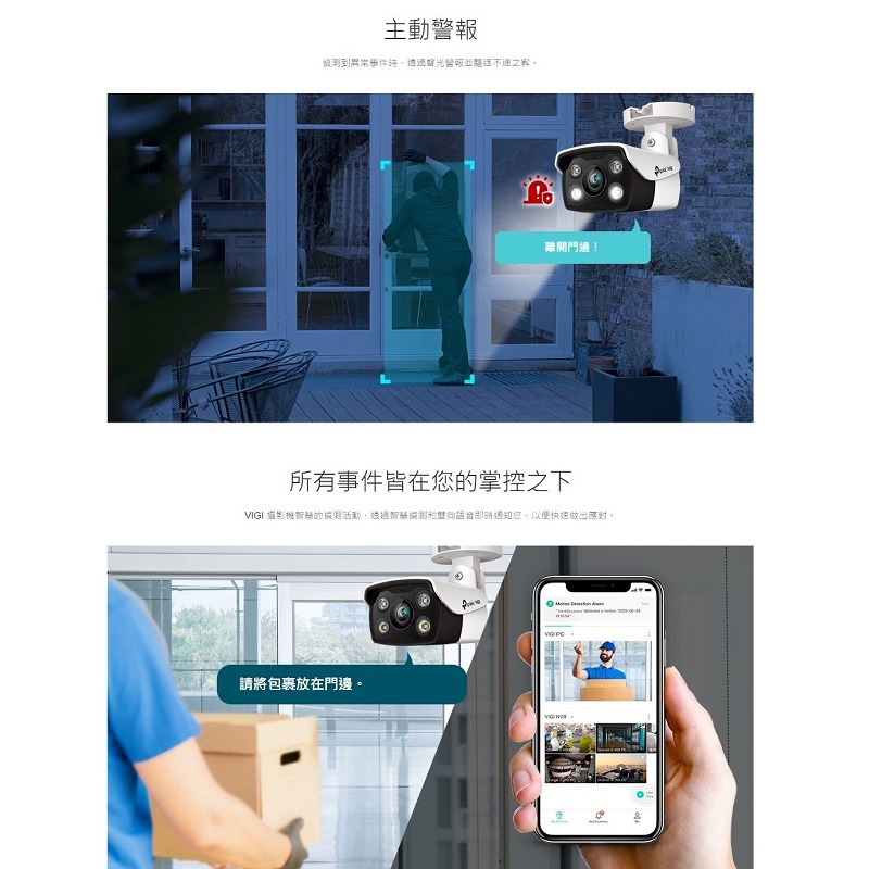 ‧主動防禦: 當異常情況發生時,立即用聲音和燈光警告潛在的入侵者